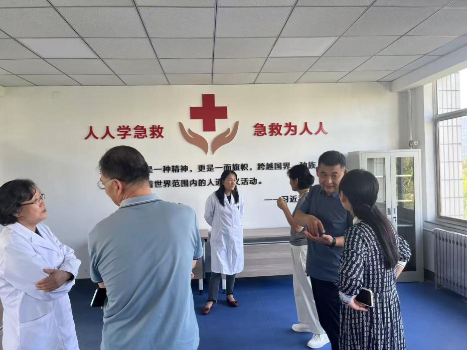 座谈结束后,梁立文一行实地考察了急救教育实训室、体检中心、成人接种门诊、医院廉政文化建设墙等。